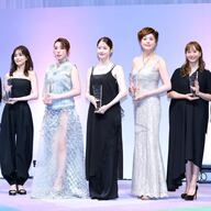「もっとも輝いていた人」を表彰 「最も輝いていた人」「宝石が似合う人」を表彰する日本ジュエリーベストドレッサー賞を受賞した山田涼介さん、芳根京子さん、仲里依紗さん、松本若菜さん、藤原紀香さん、藤本美貴・庄司智春夫妻=1日、都内 (出典:時事通信) |