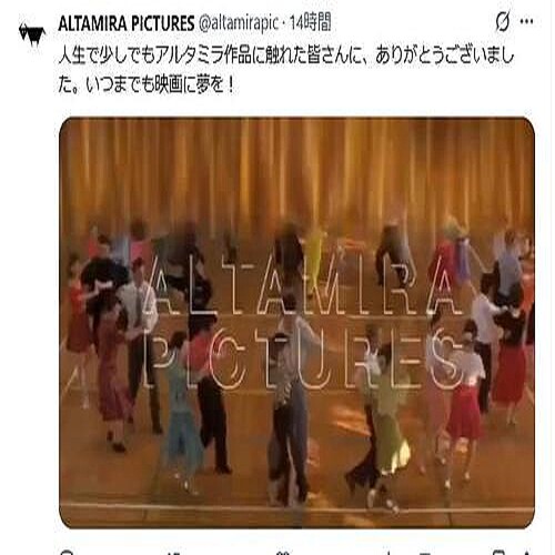 @odoriba1998アルタミラさんには若手映画作家育成事業で大変お世話になりました。作品もさることながら、次世代を育てることに尽力していただいた会社でした。ありがとうございました。 x.com/altamirapic/st…