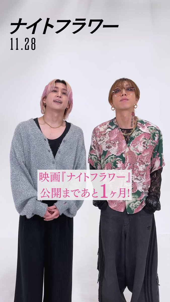 @nightflower_jp•⊱ 公開まであと1ヶ月! ⊰• #佐久間大介 さん& #渋谷龍太 さん からメッセージが到着✨ “夜の世界で⽣きる危うい男たち”を演じる お二人の演技は、公開までお楽しみに✿ 𝟏𝟏.𝟐𝟖(𝐅𝐫𝐢) #ナイトフラワー #SnowMan #SUPERBEAVER pic.x.com/TMHI4yFhhD